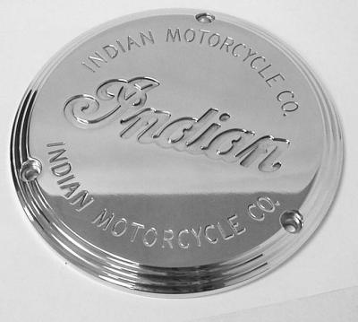This is the Indian derby cover used on all DRY (has 3 bolt holes) primary drive Indians. This cover is POLISHED and ready for your choice of finishing. Polish, paint, chrome, sandblast etc... Use as a replacement for yours, or make a clock face.