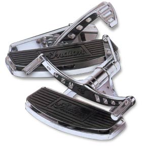 Billet Chrome forward controls with stylized levers give your Chief an extra dose of custom panache. Uses existing standard Chief floorboards. Shown with optional billet chrome shifter/brake tips. Fits “02” through “03” Chief. (DOES NOT INCLUDE FLOORBOARDS)